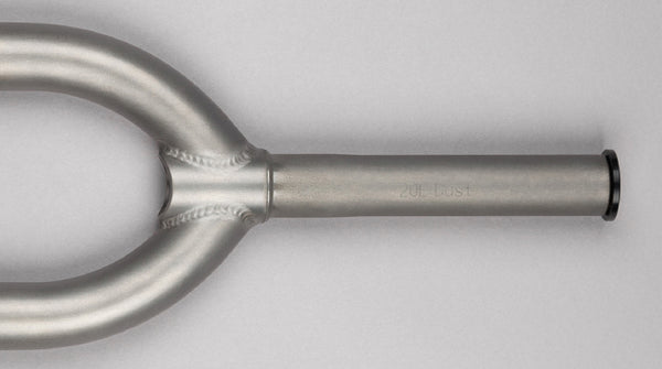 One piece fully CNC machined heat treated 4130 chromoly steerer tube. Thick in all the right places create the perfect strength to weight ratio. Including a machined lower integrated headset race and M24 thread 7075 topcap.